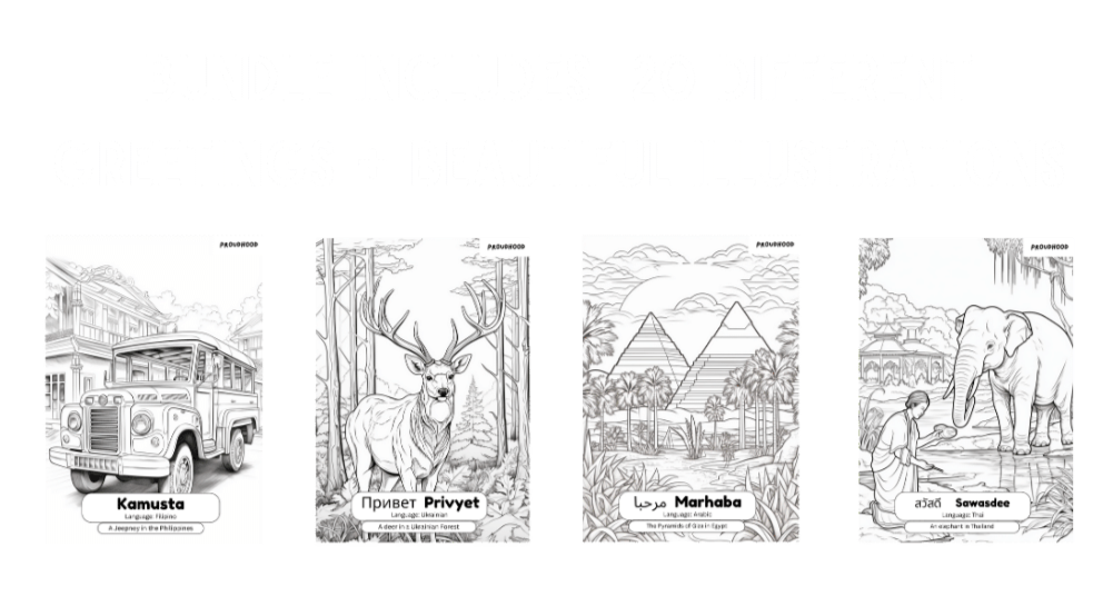 With over 20 different coloring sheets, these printable illustrations introduce how to say "hello" in multiple languages. The pages also include an image of a notable landmark or animal from a region in the world that uses each language. It's definitely a popular pack to share with the learners in your life.